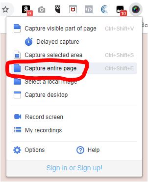3. Pilih "Capture Entire Page" (ini untuk capture keseluruhan website/blog secara full page"